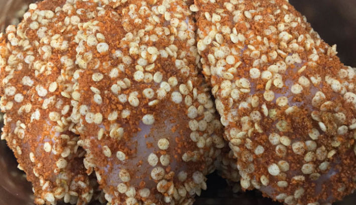Filet krokant paprika verkrijgbaar per stuk en porties van 5 en 10 stuks.